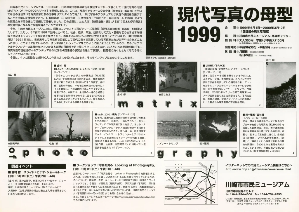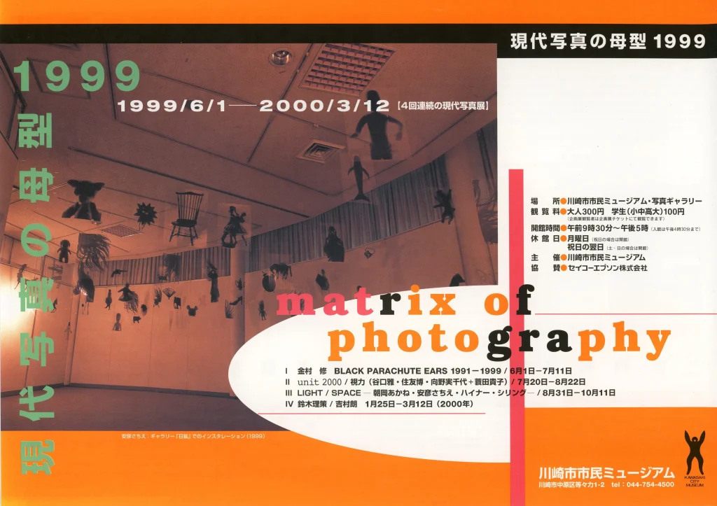 本展は川崎民ミュージアムの企画展「Matrix of Photography」の第一弾として開催され、美術館空間全体を利用したインスタレーションとして、最新作Black Parachute Earsと過去の作品を併せて展示した。