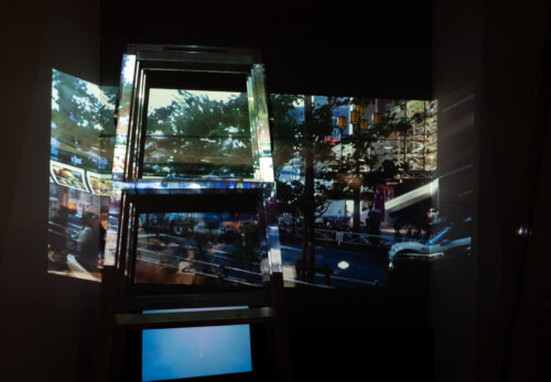 Osamu Kanemura began collages of color digital prints of his photographs with materials from magazines and newspapers in 2021. His latest film, “Z-trash diary 2020,” is also being shown at the exhibition. He made this film from 60,000 photos taken in 2020. In the movie, made using the stop-motion-animation technique for the first time, everyday life becomes trash at high speed.